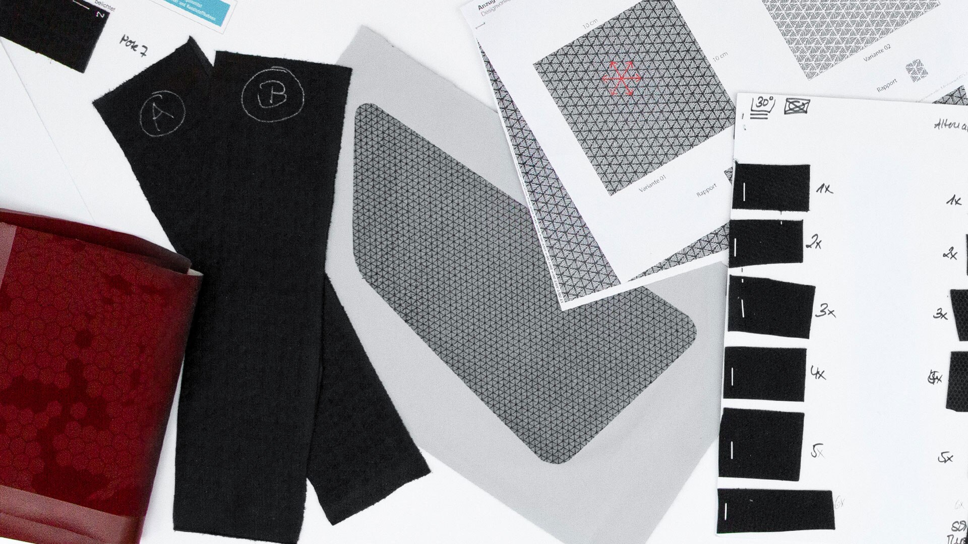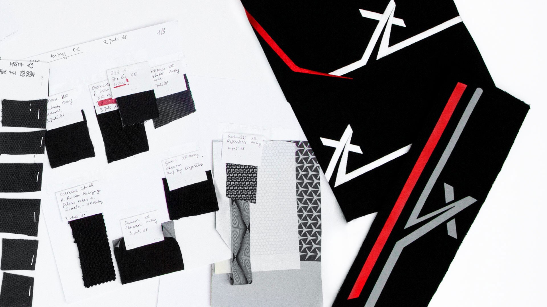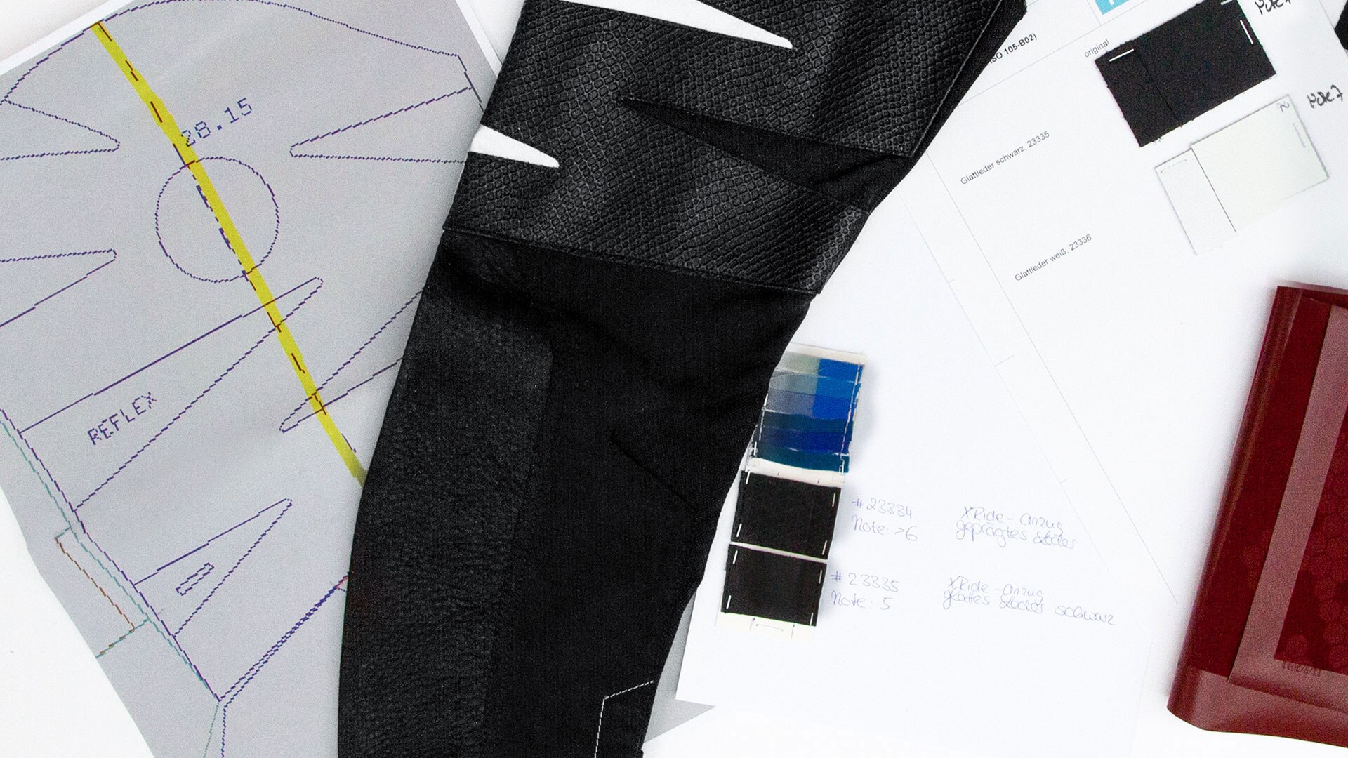Ya podíamos ver la línea de meta, pero aún nos quedaba trabajo por hacer. A continuación, era importante para nosotros desarrollar un aspecto innovador para el traje. Para ello probamos varias estructuras y procesos. Por último, nos decidimos por un estampado en cuero con una estructura técnica. Solo faltaba realizar numerosas pruebas con el XRide: pruebas de lavado, de resistencia a condiciones meteorológicas y a los efectos de la luz y, por supuesto, las pruebas de conducción y los acabados con los últimos detalles gráficos y técnicos. El resultado ya se puede ver, y te lo puedes poner.